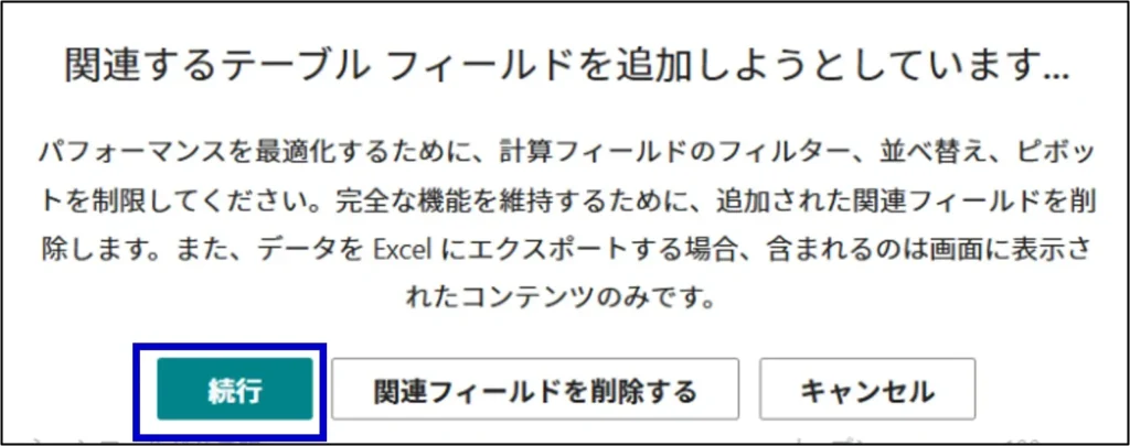 そのため、関連テーブルのフィールドを合わせて表示したい場合はPower BI での作成や開発にての対応が必要となっていたのです。